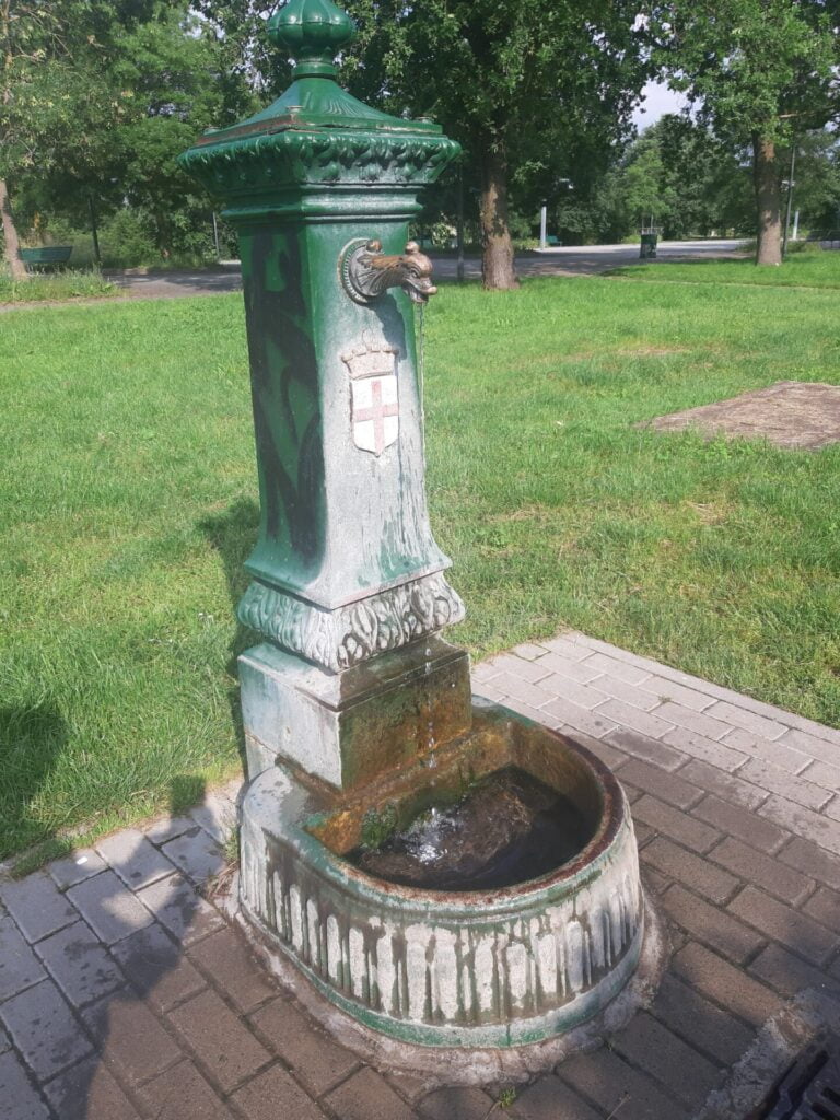Il design di queste fontane di ghisa è ancora quello del 1931 e il colore verde è arrivato dopo la seconda guerra mondiale. Sono alte un metro e mezzo e larghe cinquanta centimetri.